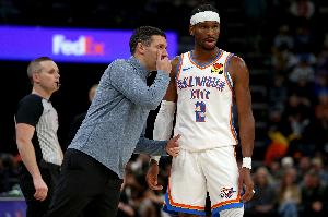 赛后雷霆主帅戴格诺特接受了采访,对于球队最后3分半钟内仅让森林狼队投进1个运动战进球的表现,戴格诺特表示:“我们在那段时间里状态极佳,我们施加了很大的压力。队员们在那3分半钟里非常专注,让森林狼队打得非常艰难。”