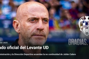 体育资讯11月30日讯 莱万特本赛季14轮仅9分,当前位列西甲积分榜倒数第二。俱乐部官方宣布,董事会与体育管理层已达成一致,朱利安·卡莱罗将不再担任男子一线队主教练。俱乐部官方声明如下:
