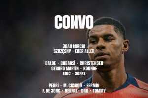 24直播12月06日讯 巴萨将客战贝蒂斯,公布了最新大名单。费尔明、德容回归,但奥尔莫、阿劳霍、加维等主力缺席。门将方面,什琴斯尼入选。此役巴萨阵容轮换意图明显,将考验板凳深度。