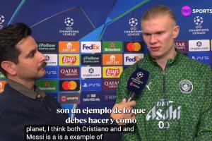 体育资讯12月11日讯 曼城2-1皇马赛后,哈兰德接受场边采访时被问到C罗的话题。