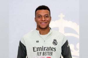 体育资讯12月13日讯 姆巴佩更新社媒动态,晒出领取皇马月最佳球员奖杯的照片。