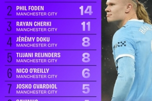 24直播12月18日讯 曼城球员本赛季参与进球数据公布:哈兰德以26球领跑,福登14球次之,谢尔基11球排名第三。多库与赖因德斯并列第四,均有8球入账。其余球员贡献进球数从6球至3球不等,展现了队内多点开花的进攻火力。