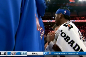 本场比赛,快船全队出现29次失误(数据统计28次+另有一次全队失误),仅6次抢断;雷霆8次失误,18次抢断。