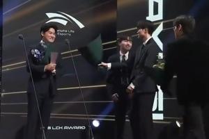 在韩网的一段视频中,在Gumayusi当选年度最佳AD之前,Keria和Oner就已经在讨论要上去送花的事情了,随后Faker点头才把身边的花拿过来准备上去送给Gumayusi。