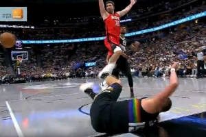 GIF-申京撞倒约基奇被吹进攻犯规,火箭挑战失败