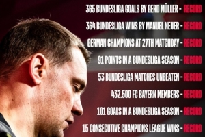 24直播11月21日讯 拜仁官方社媒晒出球队创造的辉煌纪录,涵盖德甲与欧冠赛场。包括穆勒365球、诺伊尔364胜、单赛季101球、欧冠15连胜等多项傲人数据,展现了其在德国足坛乃至欧洲的统治力。