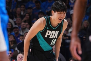 24直播01月01日讯 杨瀚森在对阵雷霆的比赛中表现积极,抢下5个篮板,并投中一记接锅三分。解说孔祥宇肯定其努力和速率提升,认为他带来了正向观感,希望他保持拼劲,继续提升三分命中率。
