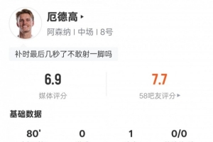 24直播01月04日讯 英超第20轮,阿森纳客场战伯恩茅斯,厄德高首发出战并送出1次助攻。他贡献1次关键传球、3次抢断,传球成功率达86.4,虽无进球,但表现稳健,是球队取胜的关键一员。