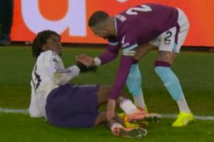 体育资讯01月08日讯 曼联vs伯恩利第77分钟,多尔古倒地后被沃克踩了一脚大腿,沃克赶紧收脚,多尔古一脸难以置信,随后沃克将他扶起来了。