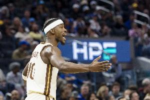 勇士球星巴特勒今天战意十足,他狂抢4个前场板展现了自己的能量。