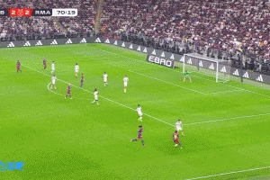 体育资讯01月12日讯 西班牙超级杯决赛,巴萨对阵皇马。71分钟,孔德传中,亚马尔铲射被库尔图瓦扑出。