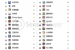 腾讯凭借旗下《王者荣耀》、《和平精英》和《PUBG MOBILE》等王牌手游的稳定表现,蝉联全球手游发行商收入榜冠军。