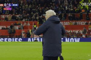 英超第12轮,埃弗顿客场少打一人1-0击败曼联,主帅莫耶斯赛后庆祝