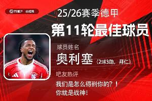 第十一轮评选结果结出炉,奥利塞2射3传超神表现,帮助拜仁让2追6击败弗莱堡,获得吧友超4.2万票支持。奥利塞毫无悬念当选【体育资讯X小红书德甲第11轮最佳球员】!