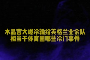 下一篇: 太炸裂了!水晶宫遭业余队淘汰,TNT解说员彻底疯狂了
